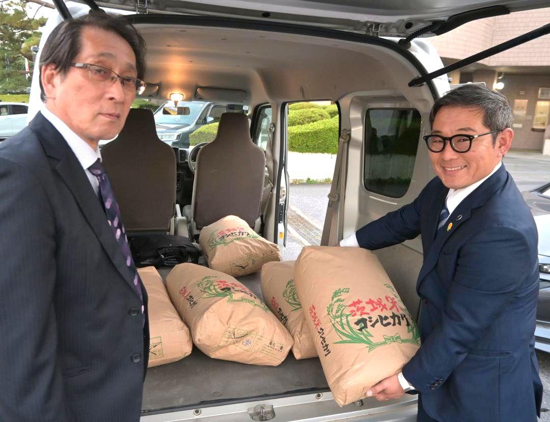 茨城県那珂市商工会青年部は6日、市内の小学生が収穫したコメを市社会福祉協議会(桐原浩彰会長)に寄贈した。青年部が子ども向け…