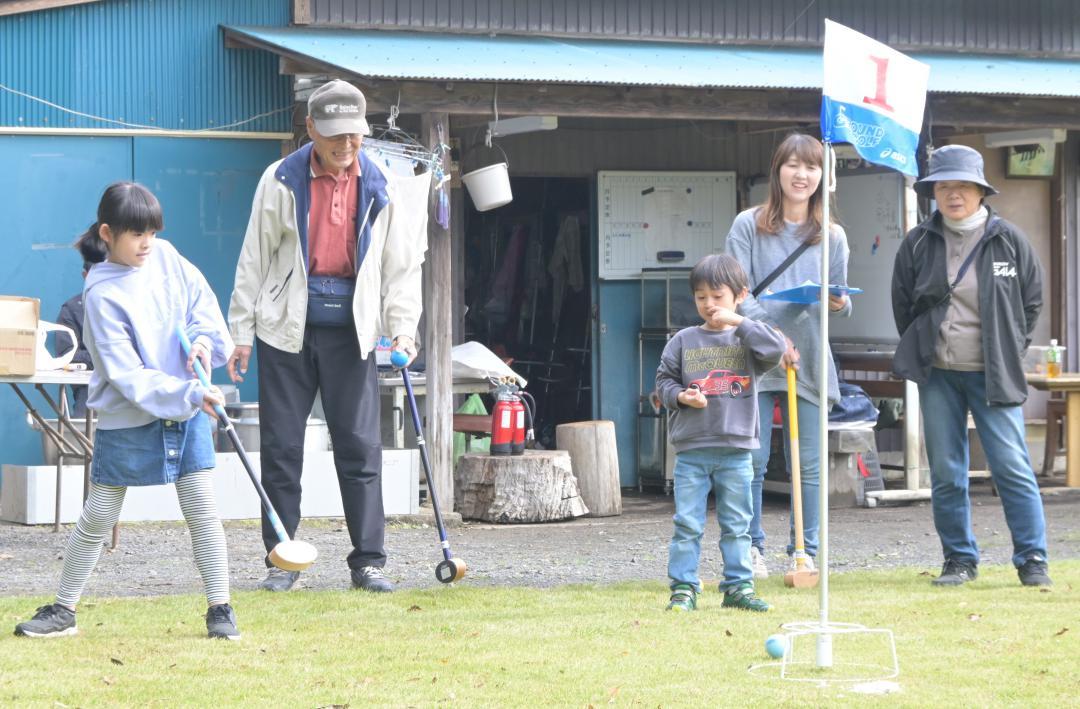 茨城県那珂市東木倉の清水洞の上公園で2日、グラウンドゴルフの大会があり、小学生から90代の住民約60人が3世代の交流を楽しん…