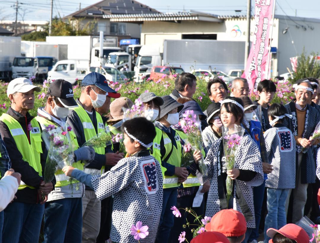 茨城県坂東市生子の市立生子菅小(小倉弘明校長)と地域住民の交流イベントが4日、学校近くの「おいごコスモス街道」で開かれた。…