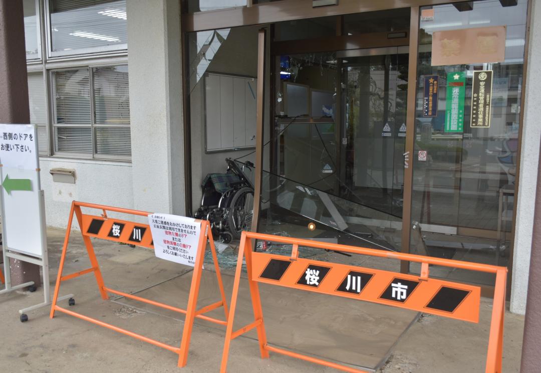 茨城県桜川市岩瀬の市役所岩瀬庁舎に20日、車が突っ込み正面玄関が壊された事件で、建造物損壊の疑いで逮捕された同市、自称…