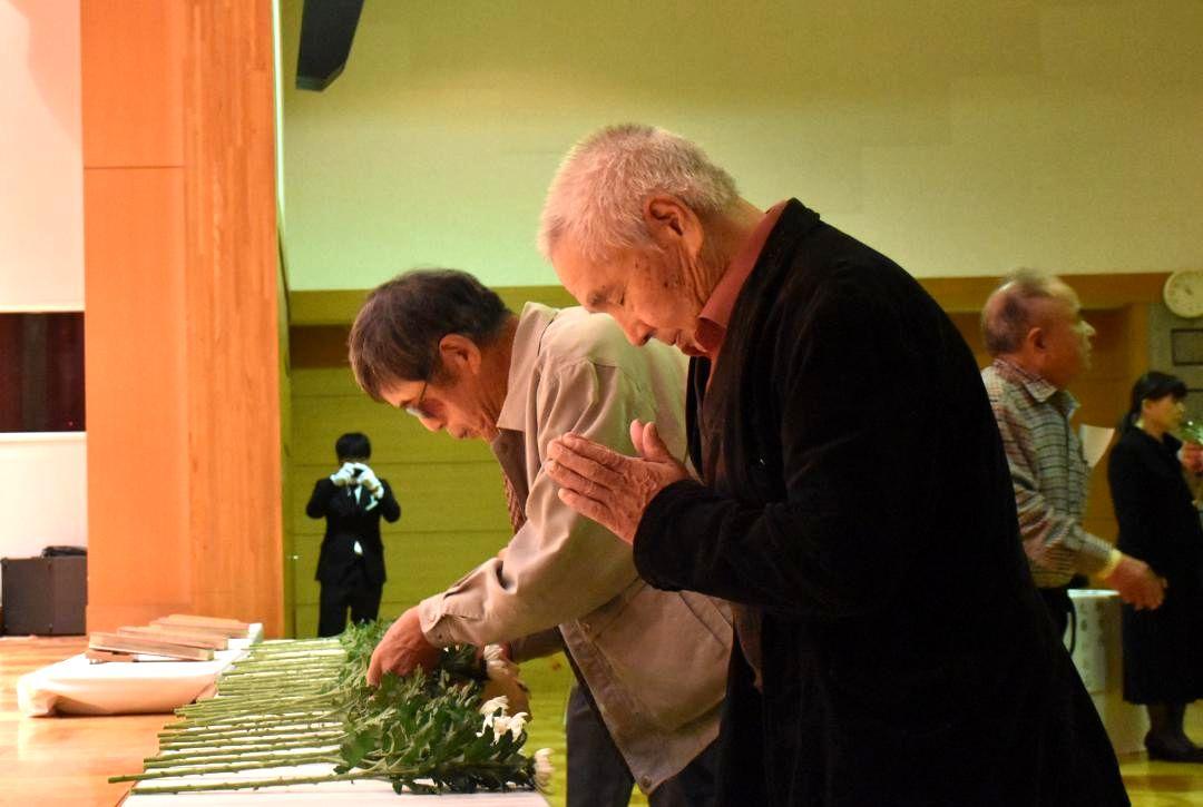 茨城県古河市戦没者慰霊祭が16日、同市前林の共和電設とねミドリ館で開かれた。遺族や来賓ら約60人が参列し、黙とうや花をささ…