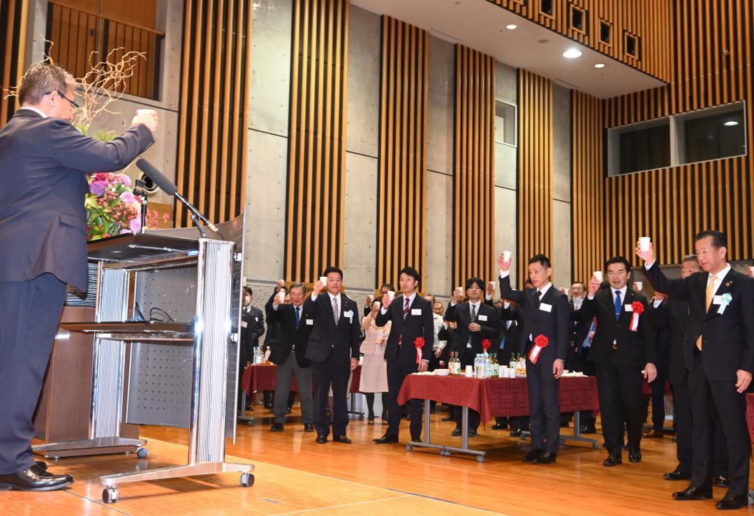 茨城県東海村の新年賀詞交歓会が6日、同村舟石川駅東の村産業・情報プラザ「アイヴィル」多目的ホールで開かれ、村内各界の代表…