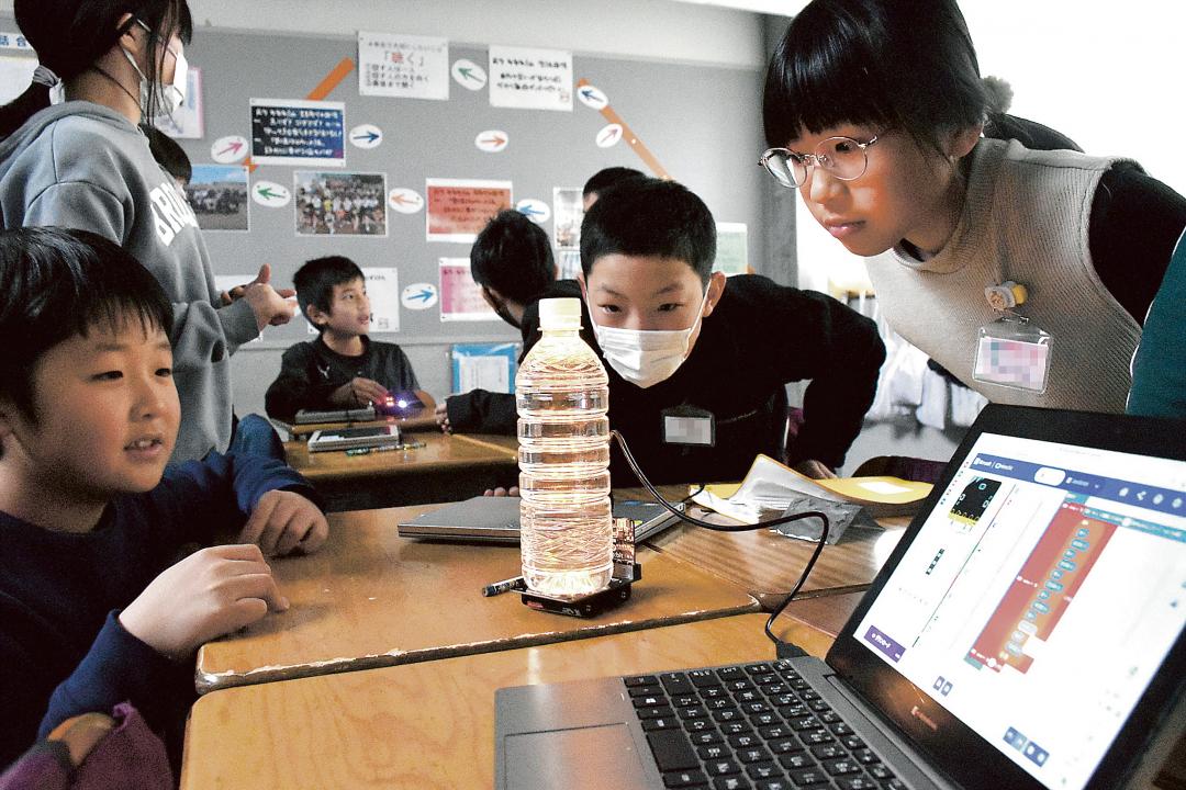 発光ダイオード(LED)の点滅をプログラミングして自分好みのペットボトルランタンを作る授業が昨年12月24日、茨城県つくば市立竹…
