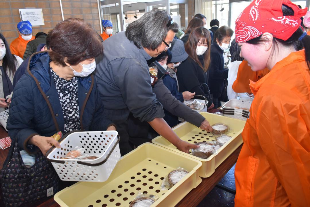 茨城県立鉾田二高(同県鉾田市鉾田、田辺宏行校長)の生徒たちが授業で作った野菜やお菓子などの加工品を販売する実習が12月17日…