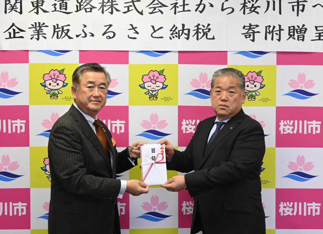 茨城県筑西市の建設業、関東道路(同市下川島)は22日、企業版ふるさと納税を利用して同県桜川市に100万円を寄付した。武藤正浩社…