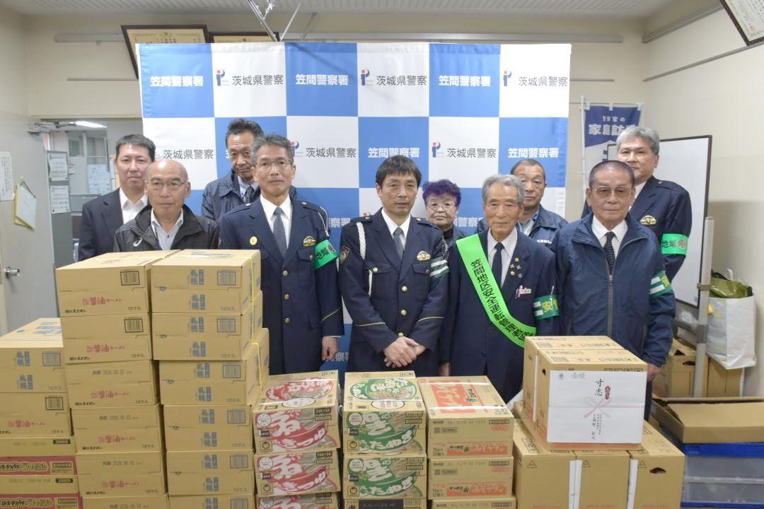 笠間地区安全運転管理者協議会(岡野安次会長)の役員らが17日、茨城県笠間市寺崎の笠間警察署を訪れ、カップラーメンやペットボ…