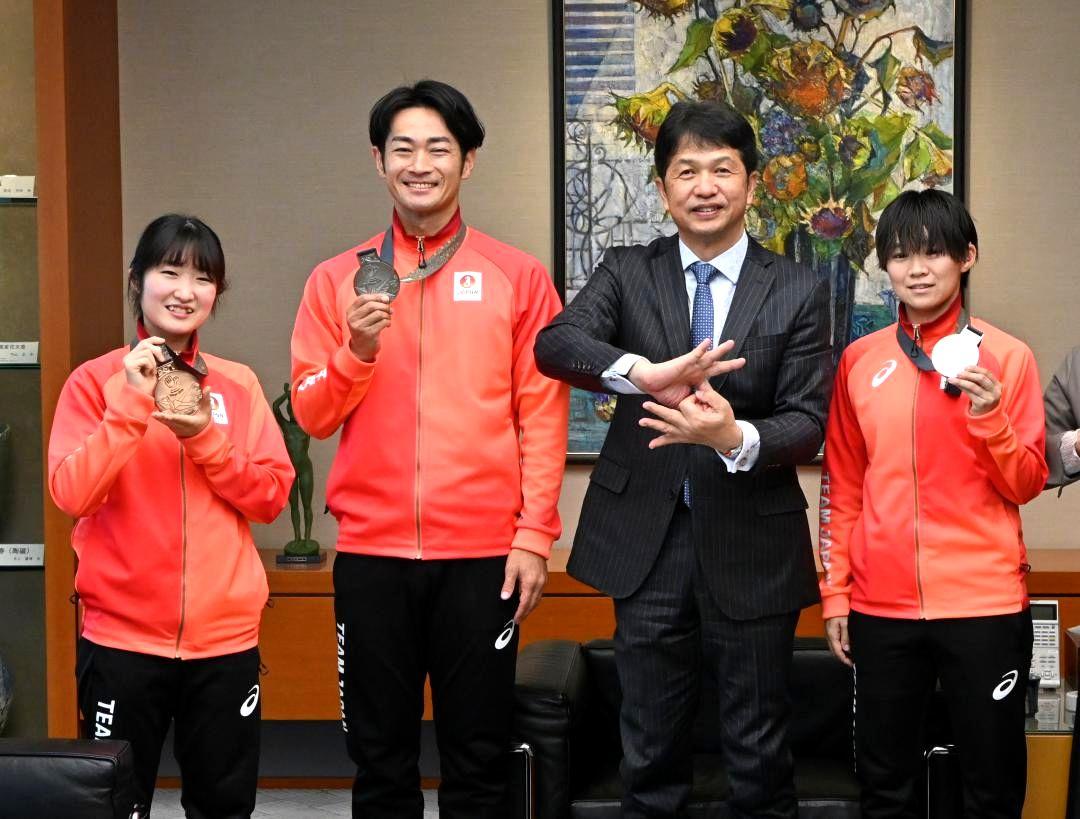 東京都で11月に開かれた聴覚障害者の国際スポーツ大会「東京デフリンピック」でメダルを獲得した茨城県在住の3選手が23日、県庁…