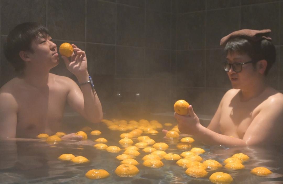 茨城県那珂市戸の県植物園「ザ・ボタニカルリゾート林音(リンネ)」で地元産のユズを浮かべたゆず風呂が始まり、爽やかな香りで…
