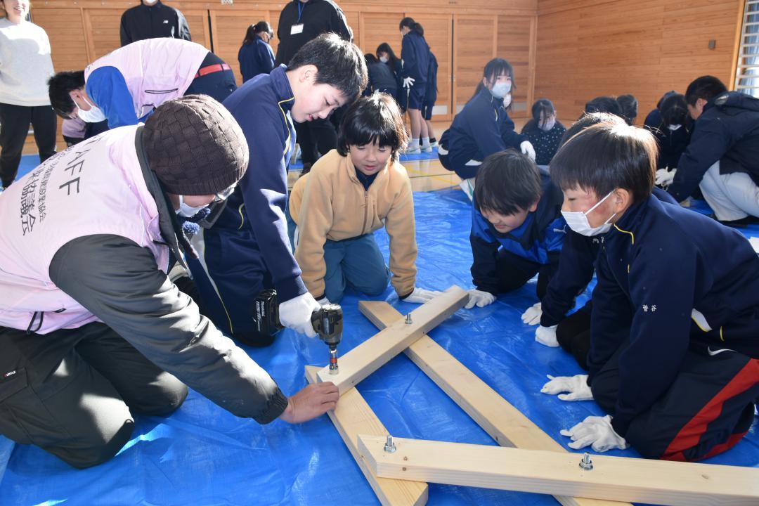 ものづくりの楽しさを知ってもらおうと12日、茨城県鉾田市上沢の市立大洋小でベンチ付きテーブル製作の体験学習が開かれた。5年…