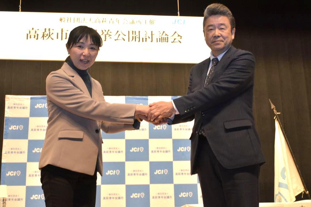 任期満了に伴い25日告示、2月1日投開票の茨城県高萩市長選に立候補を予定している2人による公開討論会が21日、同市高萩の市文化…