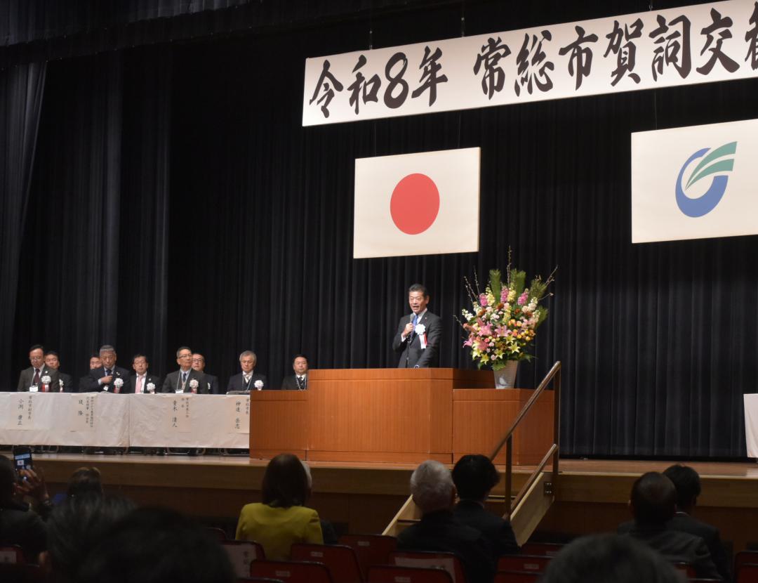 茨城県常総市の賀詞交歓会が15日、同市新石下の市地域交流センター「豊田城」で開かれた。各界の代表ら約270人が出席し、1年の…