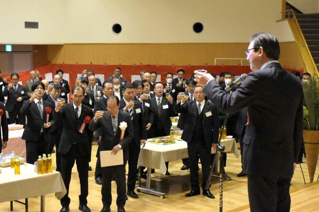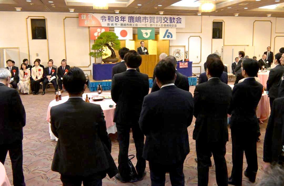 新年を祝う茨城県鹿嶋市の賀詞交歓会が14日、同市宮下のサンロード鹿島で開かれた。市内各界の代表者ら約160人が出席。今年1年…