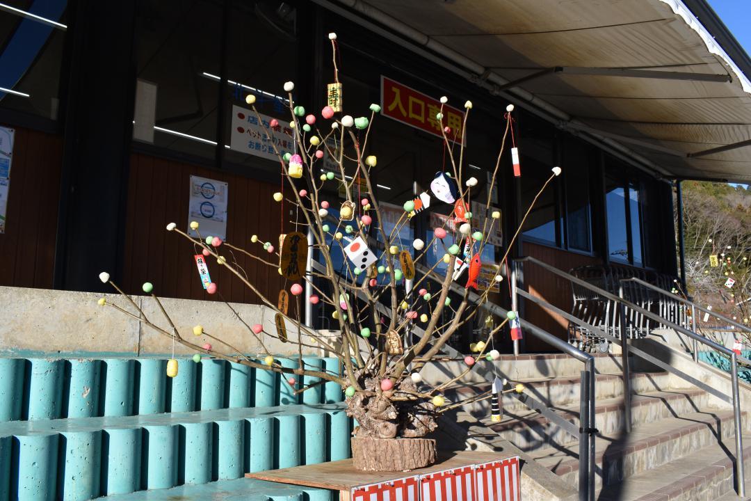 商売繁盛や五穀豊穣(ほうじょう)、家内安全を願う小正月の縁起物「まゆ玉飾り」が、茨城県常陸大宮市鷲子の「道の駅みわ★北斗星…