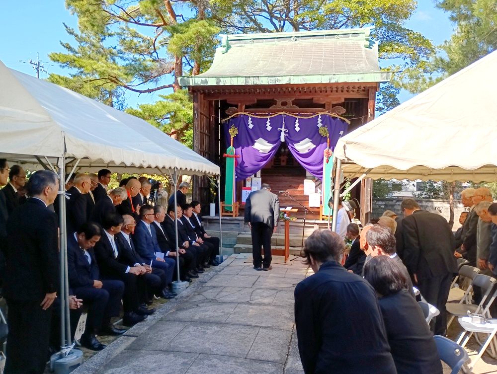 幕末の殉難志士らを祭る茨城県水戸市松本町の回天神社(羽部道紀代表役員)で14日、秋季大祭が行われ、志士の子孫らが玉串を…