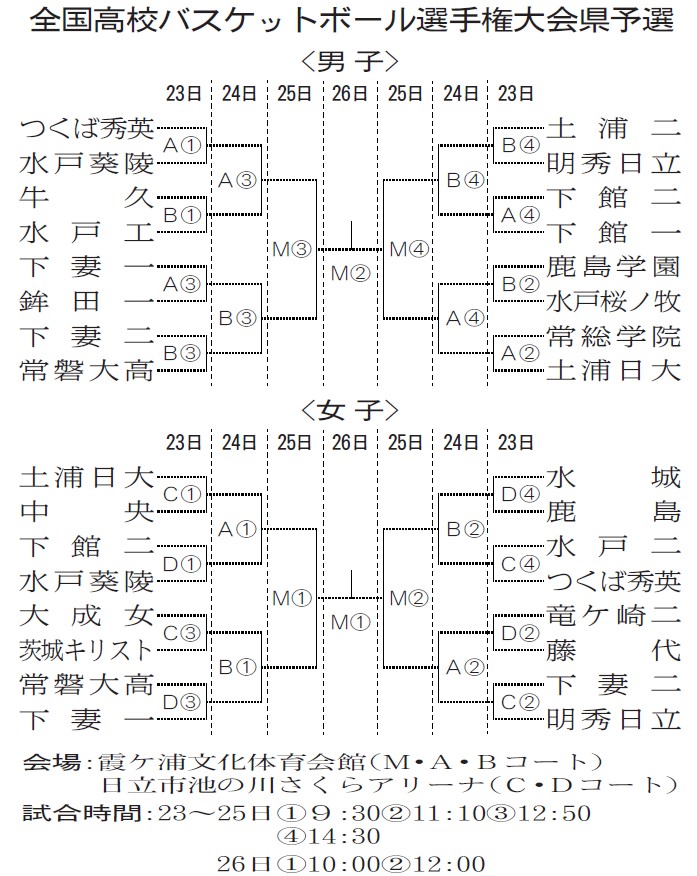 バスケットボールの第78回全国高校選手権(ウインターカップ)茨城県予選は23日、男子は霞ケ浦文化体育会館、女子は日立市…