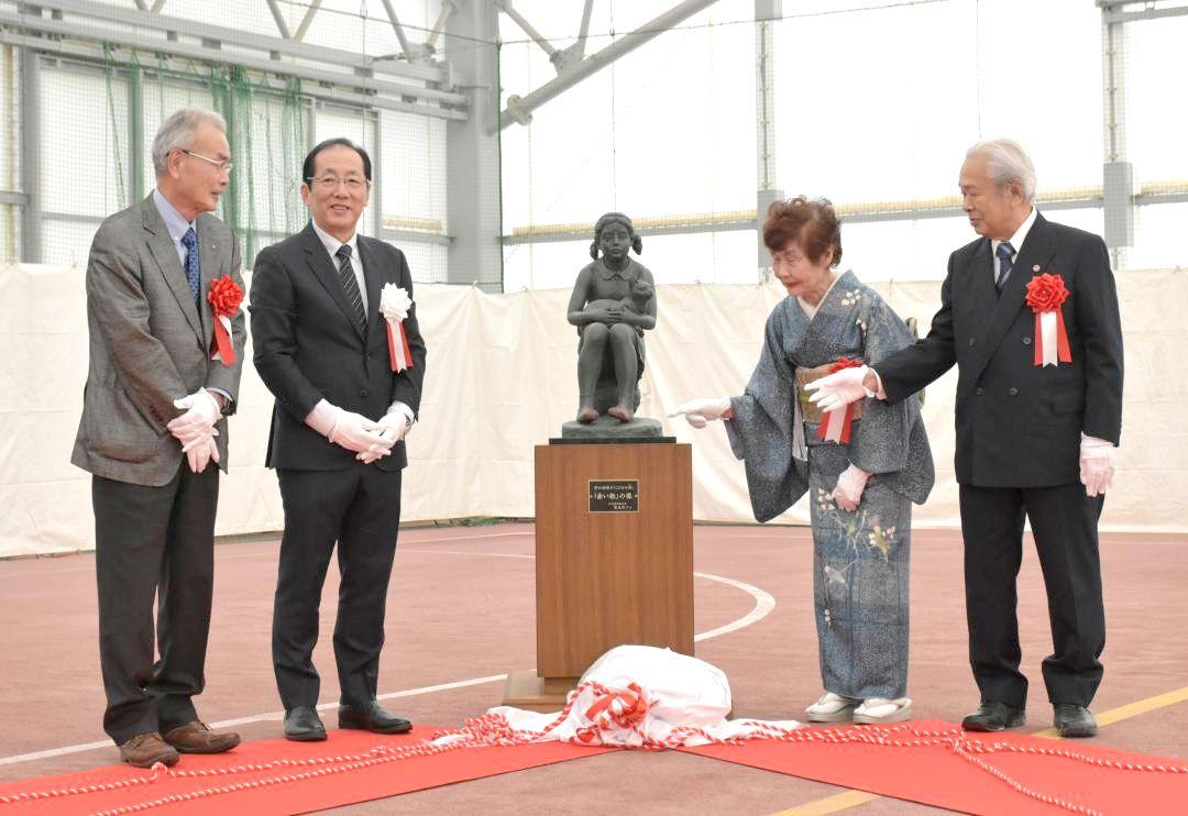 茨城県北茨城市出身の野口雨情が作詞した童謡「赤い靴」の銅像が2日、同市磯原町磯原の筑波銀行あゆみドームでお披露目された。…