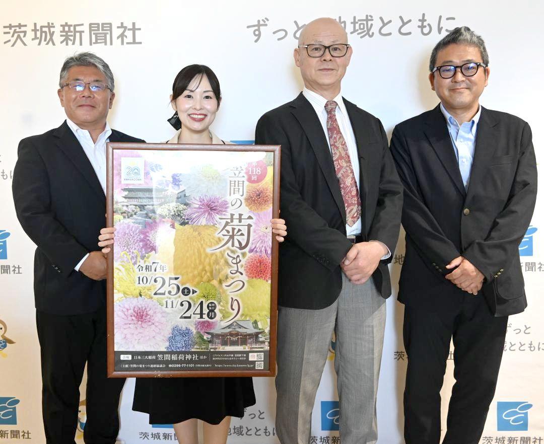 茨城県笠間市笠間の笠間稲荷神社で25日に開幕する「第118回笠間の菊まつり」をPRしようと、笠間観光協会や同市の関係者ら4人が1…