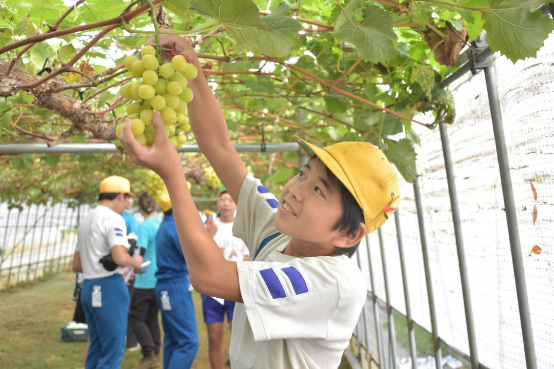 茨城県八千代町立下結城小(同町平塚、横関正俊校長)の6年生28人が9日、学校近くの「さと果ぶどう園」でシャインマスカットの収…
