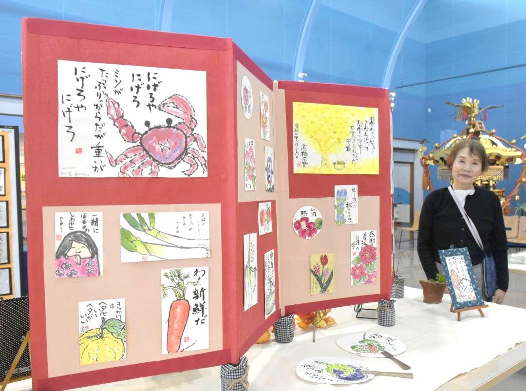 茨城県神栖市の絵手紙サークルによる初めての作品展が、同市波崎のはさき生涯学習センターで開かれている。季節の花や野菜の絵…