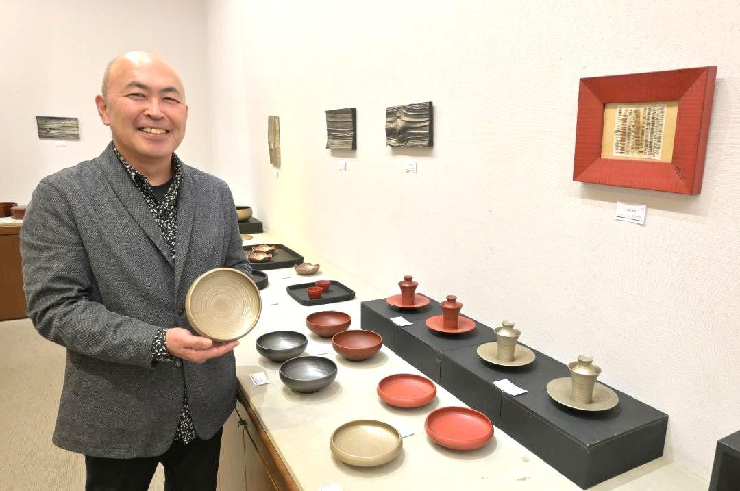 茨城県常陸大宮市に住む木漆工芸作家の辻徹さん(61)の個展が16日、同県水戸市泉町の京成百貨店アートギャラリーで始まった。大…