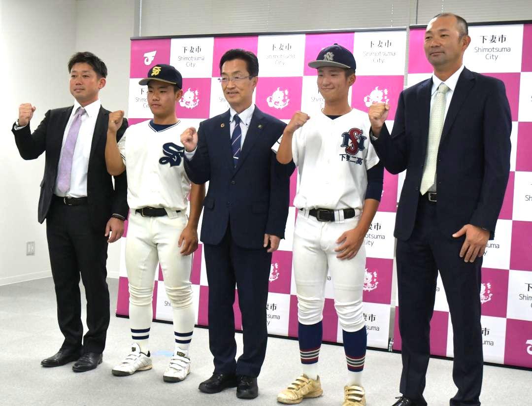 秋季関東高校野球大会に茨城県代表として出場する県立下妻二、下妻一両校の野球部が10日、同県下妻市役所の菊池博市長を表敬訪…