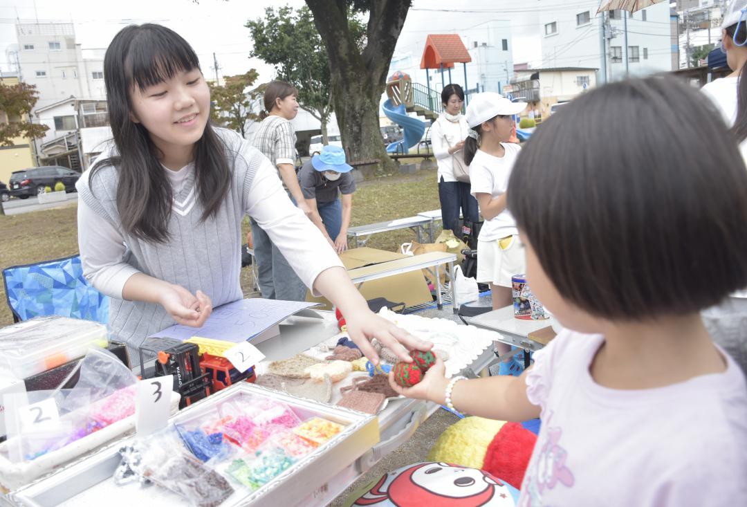 子どもたちが店員を務めるマルシェイベントが5日、茨城県日立市弁天町のまえのうち児童公園で開かれた。各自が手作りの雑貨やゲ…