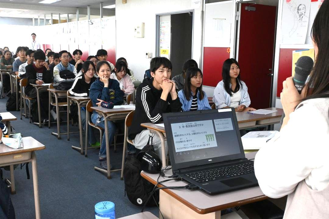 茨城県取手市戸頭の日本語学校「つくばスマイル」で7日、市職員を講師に迎えた租税教室があり、留学生が納税の義務や税の使われ…