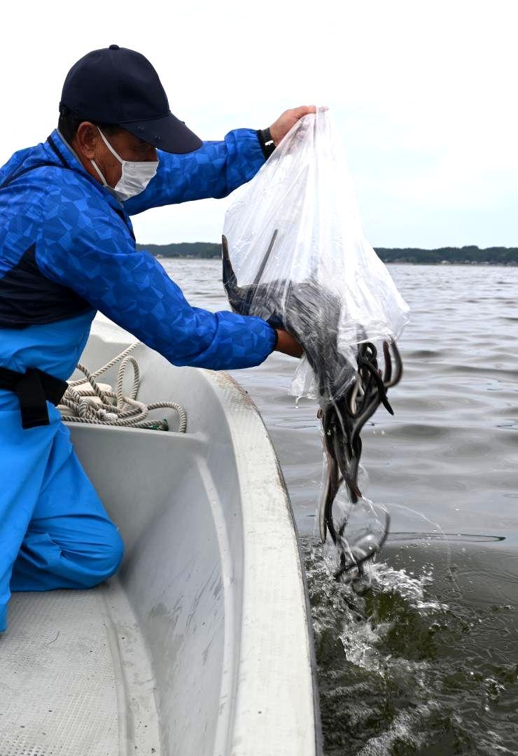 大涸沼漁協(茨城県茨城町下石崎、坂本勉組合長)は3日、涸沼にウナギの幼魚を放流した。 坂本組合長ら関係者が同日午後、同所…