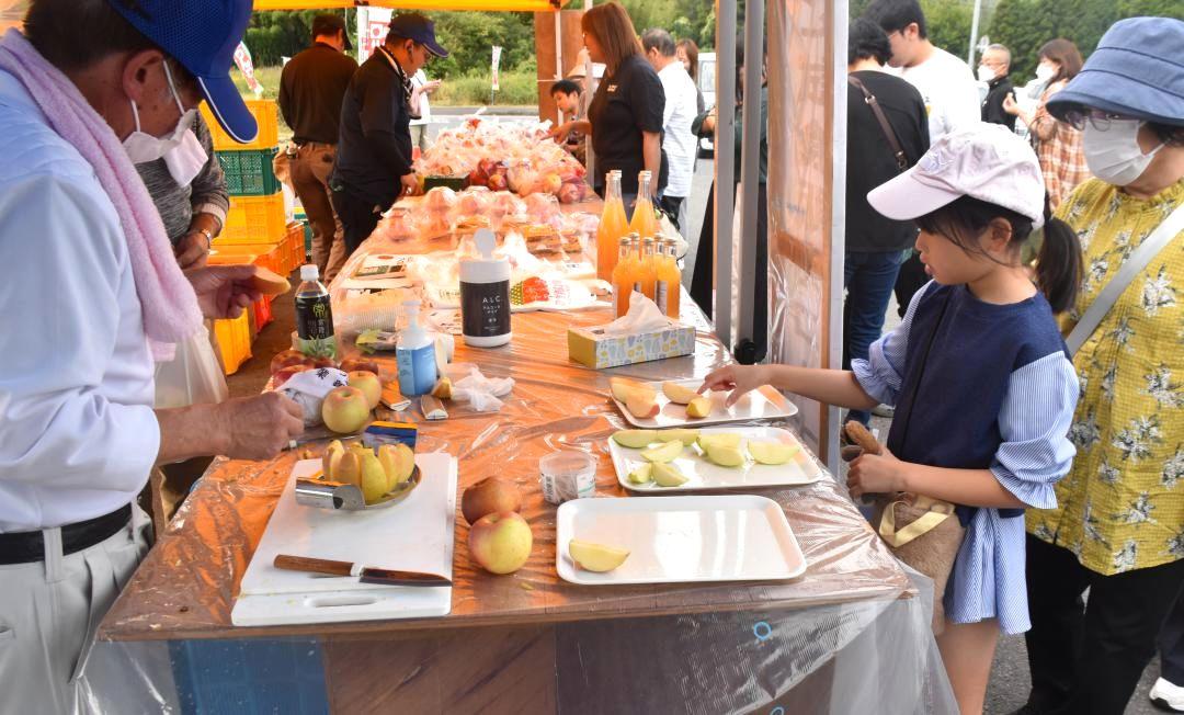 リンゴ狩りシーズンを迎えた茨城県大子町で5日、「奥久慈りんごフェスティバル」(JA常陸大子町りんご部会主催)が開かれた。会場…