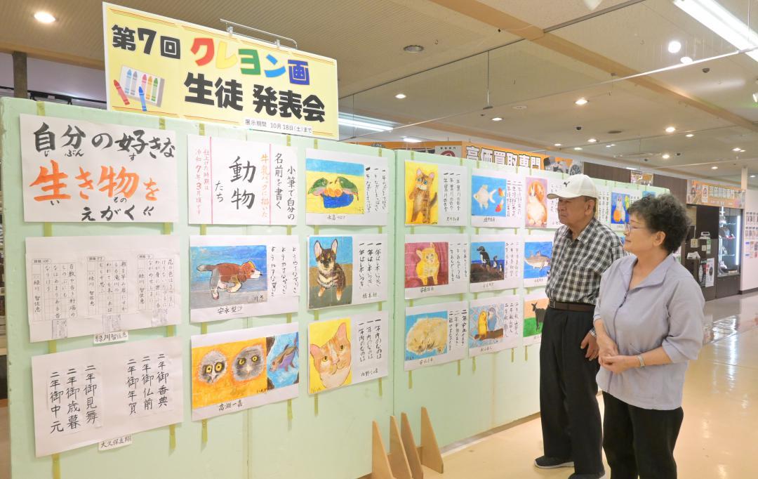 茨城県鹿嶋市内のクレヨン画・習字教室に通う生徒の発表会が、同市鉢形のショッピングセンター「サンポートかしま」で開かれて…