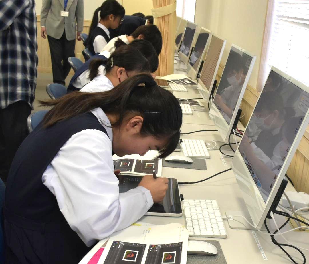 茨城県笠間市笠間の県立笠間高(渡辺英一校長)で9月27日、学校説明会が行われ、中学生ら約70人が、メディア芸術科の体験学習や美…