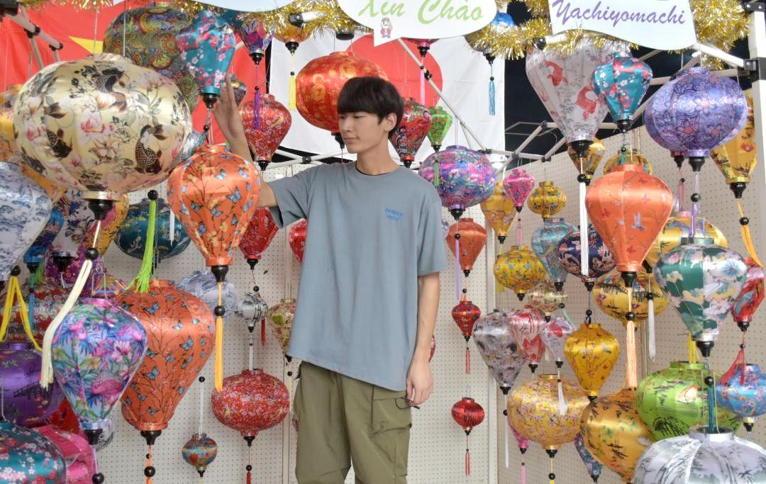 ベトナムの伝統的な祭り「中秋節」に合わせ、茨城県八千代町菅谷の町中央公民館に色鮮やかなベトナム提灯(ちょうちん)が飾られ…