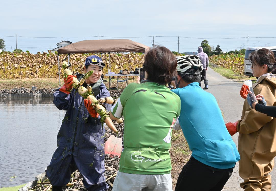 茨城県河内町の魅力を感じてもらおうと、町内で9月27日、農業体験とサイクリングを組み合わせたツアーが開かれた。同町長竿の町…