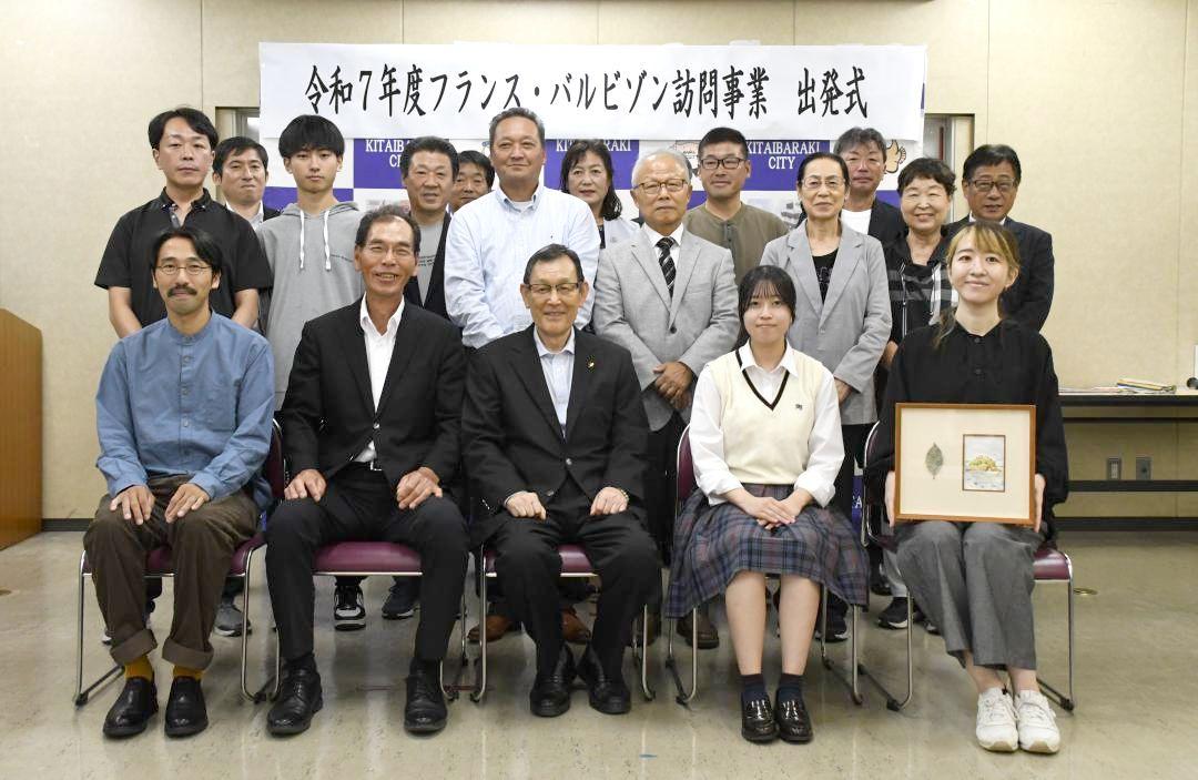 茨城県北茨城市と仏・バルビゾン市の友好都市協定締結を記念し、現地に派遣される北茨城市の訪問団の出発式が9月26日、同市磯原…
