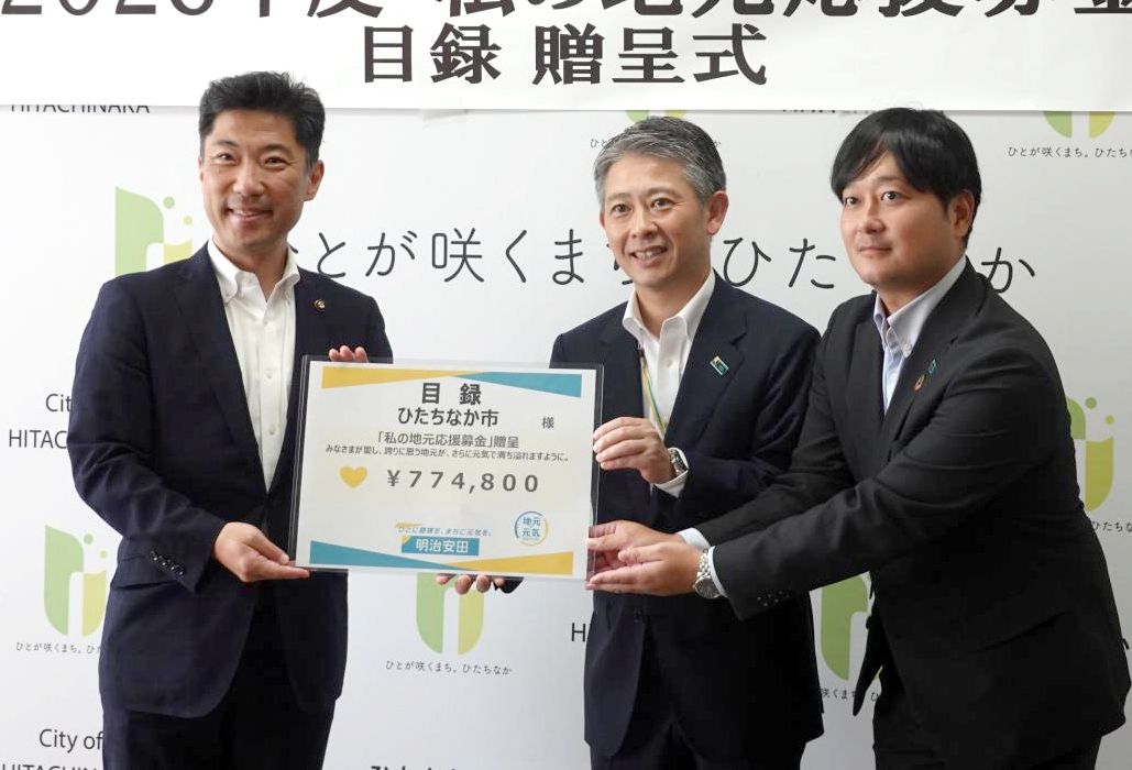 市民の健康づくりや地域活性化に役立ててもらおうと、明治安田生命水戸支社は9月25日、茨城県ひたちなか市に「私の地元応援募金…