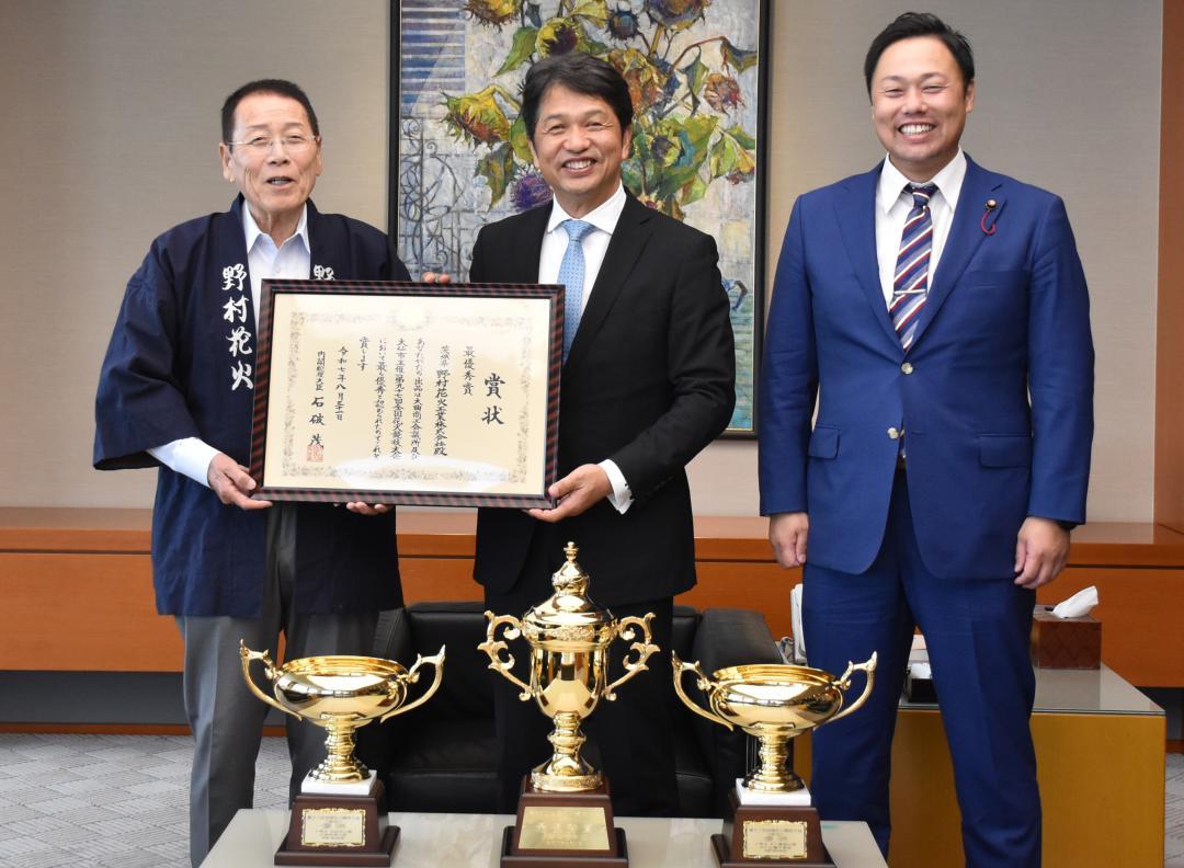 秋田県大仙市で8月に開かれた第97回全国花火競技大会「大曲の花火」で、最優秀賞の内閣総理大臣賞を受賞した野村花火工業(茨城…