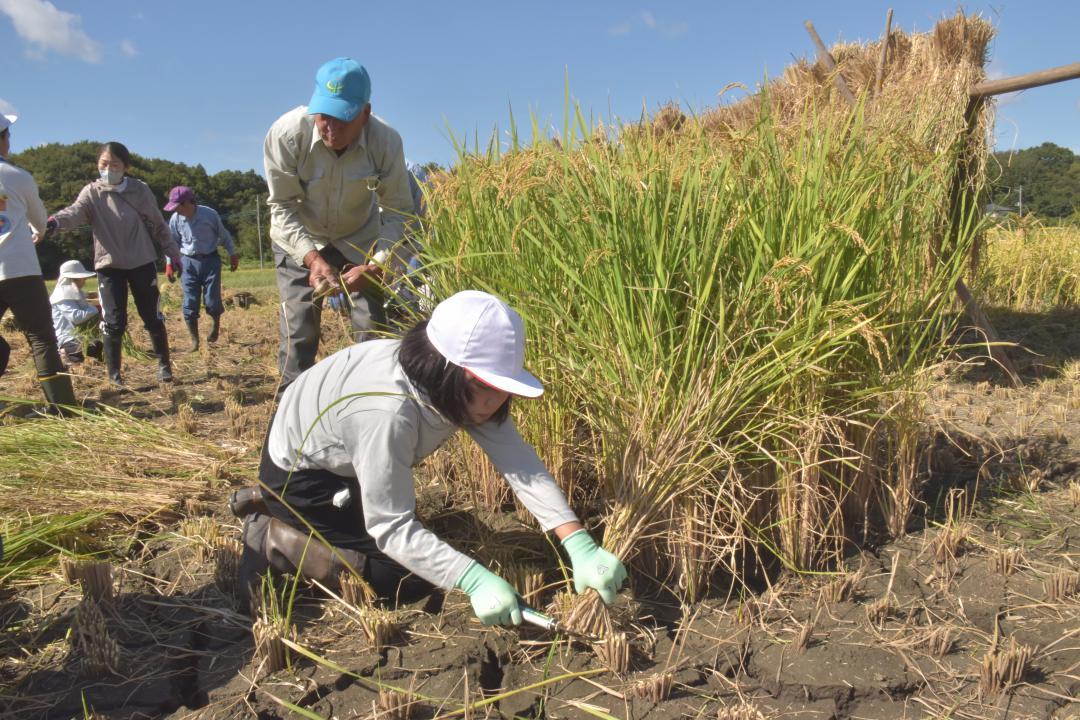 茨城県常陸太田市立世矢小学校(同市真弓町、木村央校長)の5年生29人が24日、同校近くの田んぼで稲刈りを行った。自分たちが育て…