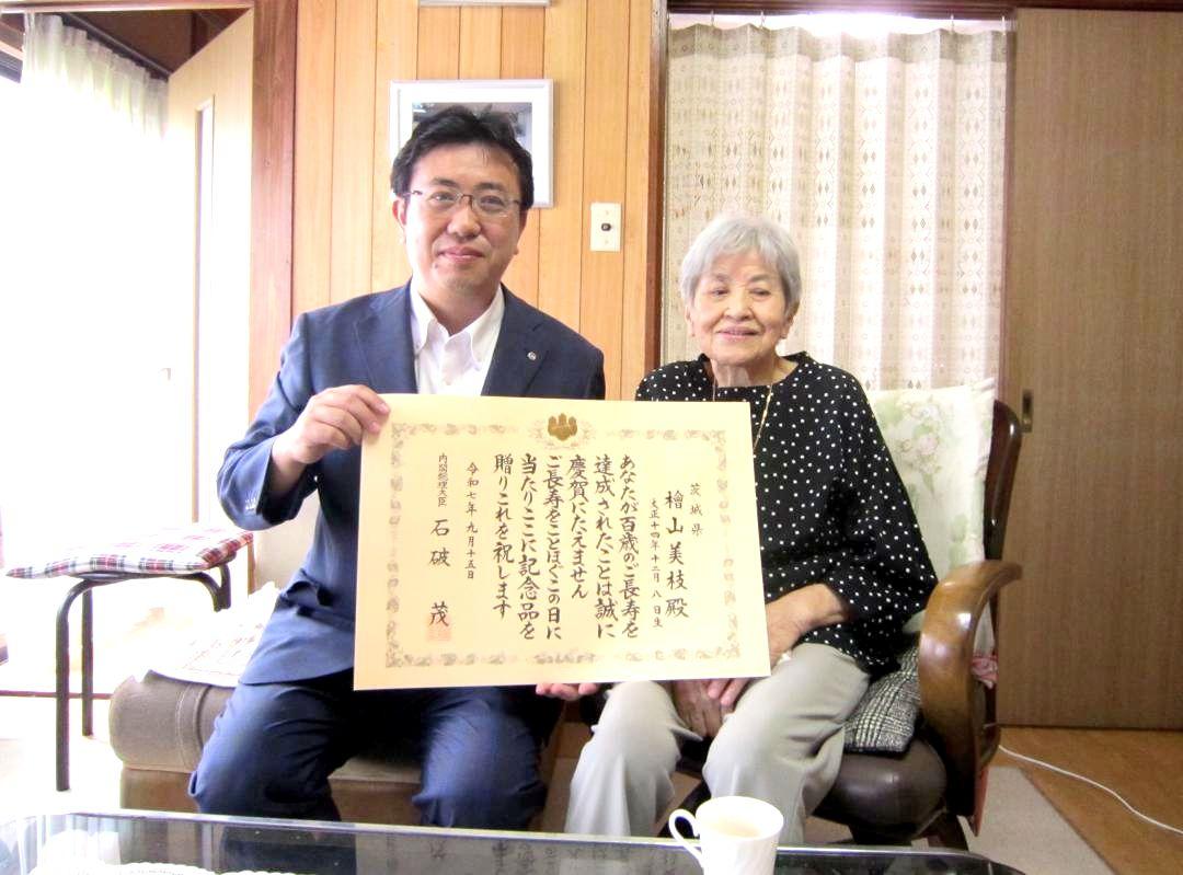 「敬老の日」にちなみ、茨城県城里町の上遠野修町長は15、16両日、本年度100歳を迎える町内の高齢者宅を訪問した。同町石塚の檜…