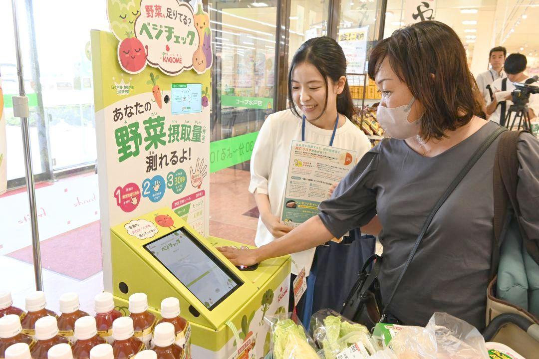 手のひらから野菜の摂取量が分かる測定器が26日、いばらきコープ生活協同組合(茨城県小美玉市、木村千秋理事長)の水戸店と日立…