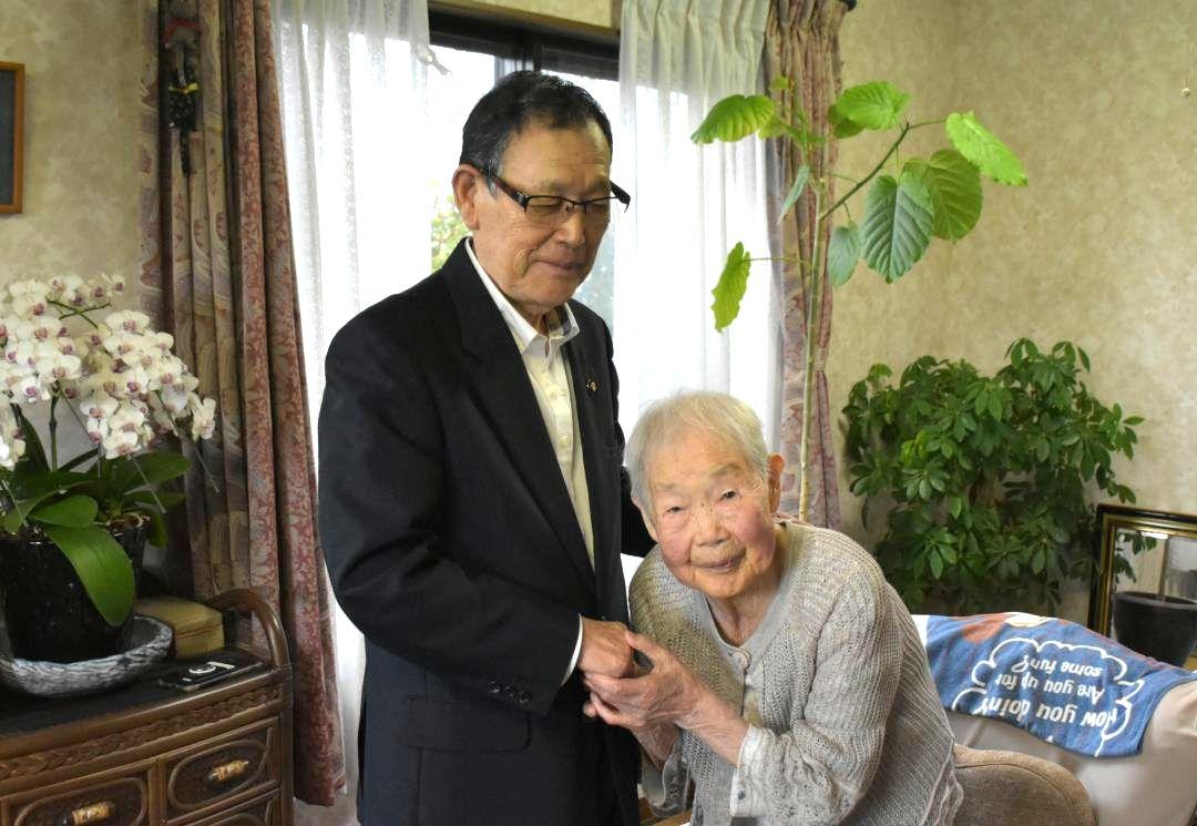 敬老の日(9月15日)にちなみ、茨城県北茨城市の豊田稔市長が18日、100歳を迎えた同市磯原町木皿の鴨志田もとさん宅を訪れ、長寿…