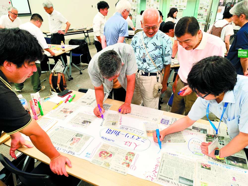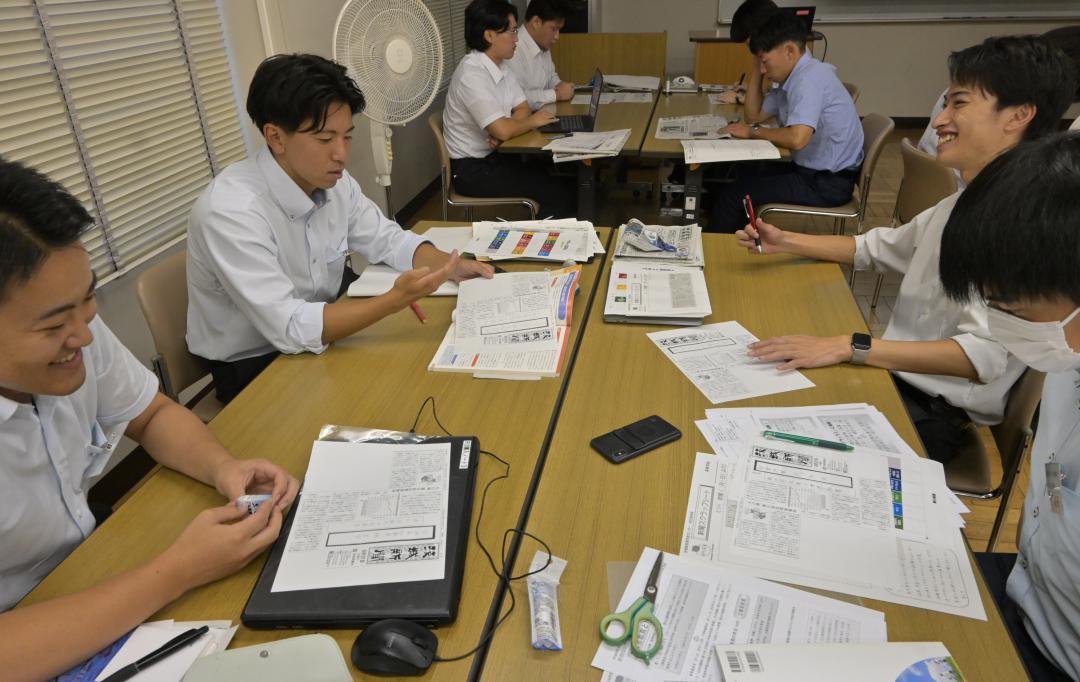 ■違う考え、雑談で共有 横浜でサミット 情報リテラシーも磨く 持ち寄った新聞を回し読み、「気になる」記事を切り抜いて、…