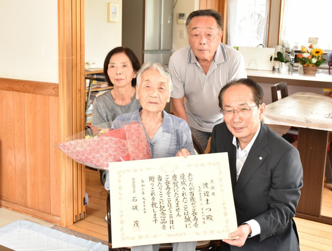 9月15日の「敬老の日」に合わせ、茨城県五霞町の知久清志町長は16日、町内最高齢の男女2人の自宅や入所施設と、本年度100歳を迎…