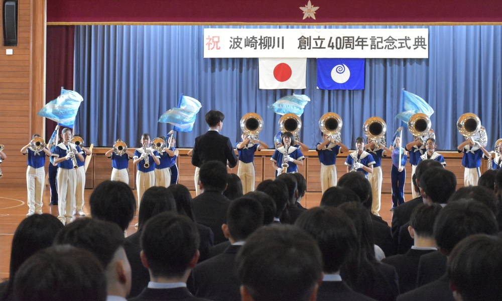 茨城県神栖市柳川の県立波崎柳川高(岩瀬美江校長)は18日、同校体育館で創立40周年記念式典を開いた。在校生と教職員、地域の関…