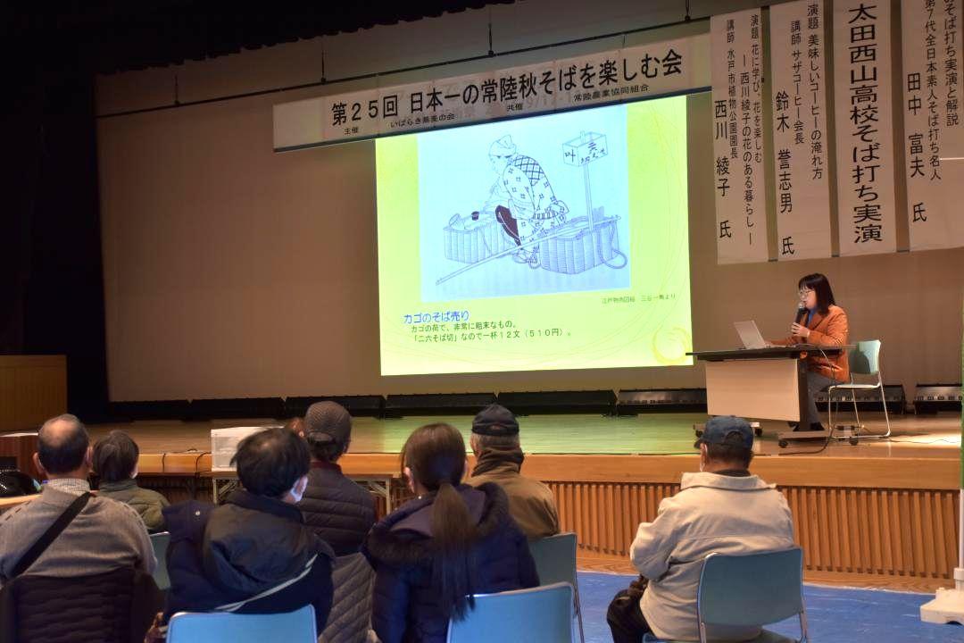 そばに関する講演やそば打ち名人が技を披露する「第25回日本一の常陸秋そばを楽しむ会」(いばらき蕎麦(そば)の会主催)が8日、「…