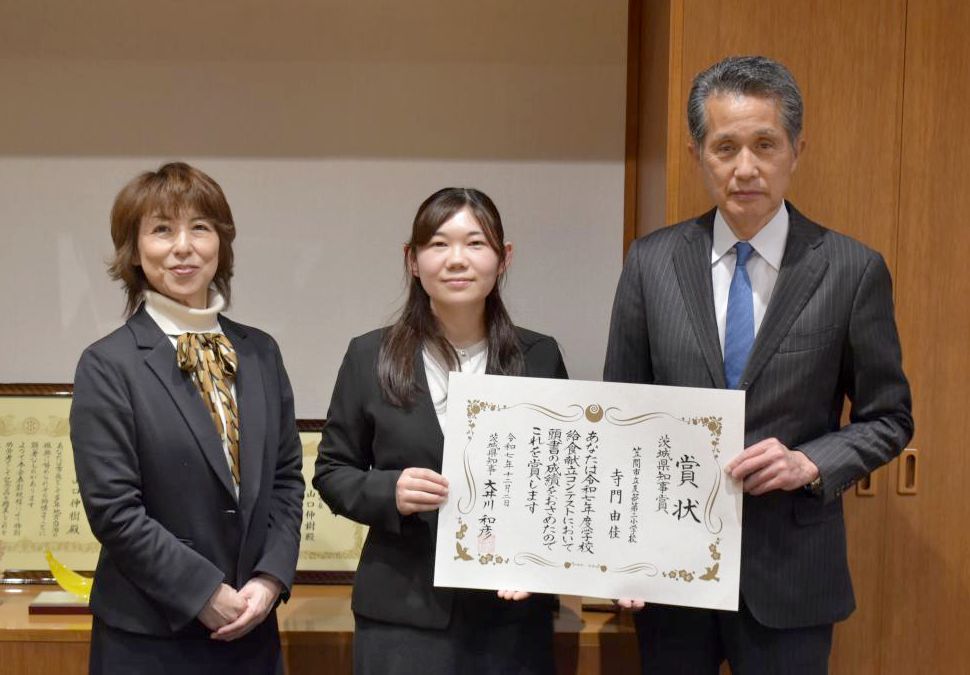 茨城県笠間市立友部二小(久保木香澄校長)の寺門由佳栄養教諭(34)が県学校給食会の本年度「学校給食献立コンテスト」で県知事賞…