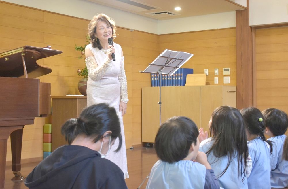 茨城県水戸市備前町の少友幼稚園は15日、園児や地域住民の交流施設「フレンドハウス」の完成を記念し、同県高萩市出身のアルト…