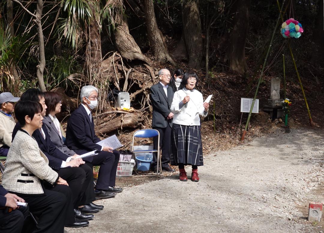 茨城県ひたちなか市勝倉地区で、戦時中の米軍の艦砲射撃で犠牲になった一家を弔う石地蔵を参拝できるよう、整備された参道の完…