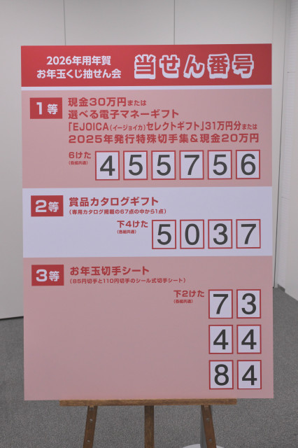 2026年「お年玉付き年賀はがき」当せん番号が発表 1等は100万本に1本、現金30万円など【当せん番号一覧】
