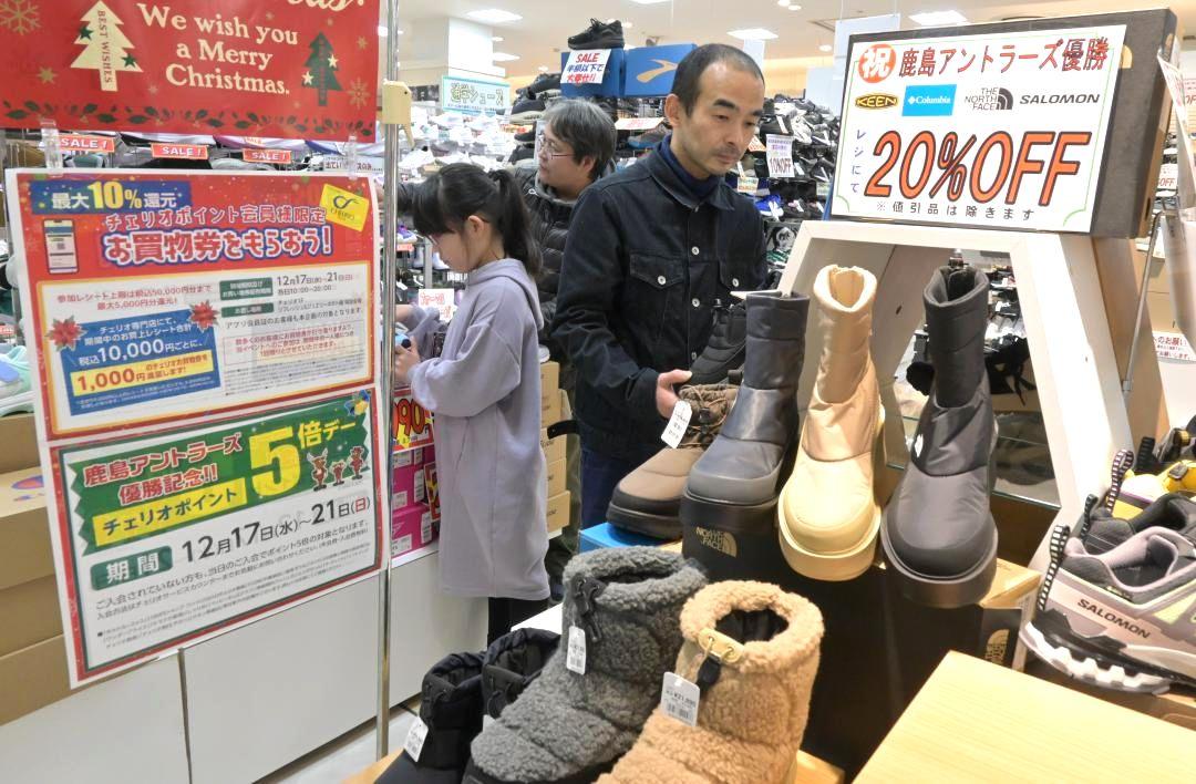サッカー・J1鹿島アントラーズの9季ぶり9度目リーグ制覇を記念し、茨城県鹿嶋市宮中のショッピングセンター「チェリオ」では17…