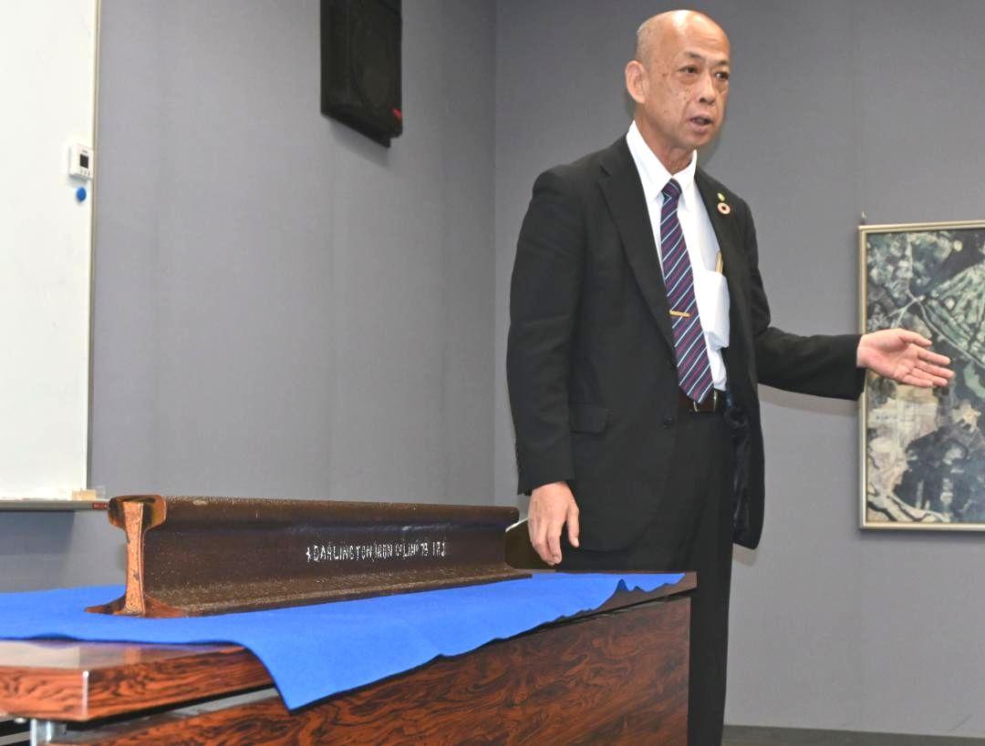 8月に解体された茨城県龍ケ崎市の旧関鉄タクシー車庫で支柱として使われていた鉄道レールが、152年前の1873年に英国で製造され…